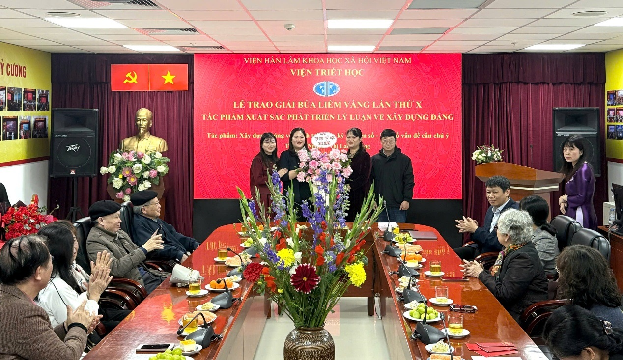 VIỆN TRIẾT HỌC TỔ CHỨC LỄ TRAO GIẢI BÚA LIỀM VÀNG LẦN THỨ X Ở HẠNG MỤC TÁC PHẨM XUẤT SẮC PHÁT TRIỂN LÝ LUẬN VỀ XÂY DỰNG ĐẢNG CHO PGS. TS. NGUYỄN THỊ LAN HƯƠNG